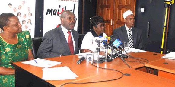 Press conference to announce the swearing in of the HIV Equity Tribunal. Panelists from left to right: Prof Mary Getui, Chair of Kenya's National AIDS Control Council (NACC) board; Ambrose Rachier, Chair of the HIV Equity Tribunal in Kenya; Hon Esther Murigi , Minister of Special Programmes in Kenya; Hon Mohammed, Former Assistant Minister, Special Programmes.