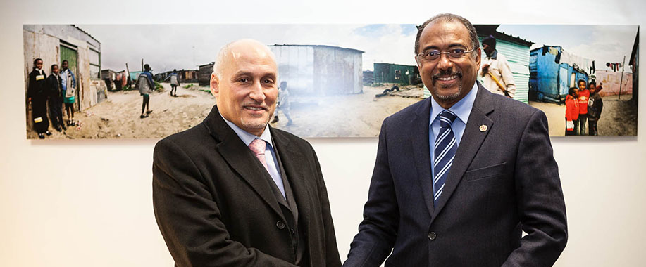 First Deputy Minister of Health of Libya, Dr. Adel M. Abushoffa (Left) and UNAIDS Executive Director Michel Sidibé