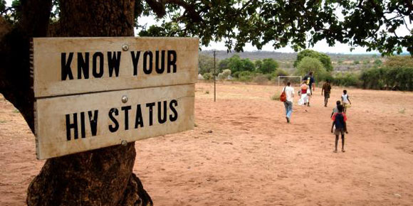 A sign reading "Know your HIV status", promoting HIV testing in Livingstone, Zambia