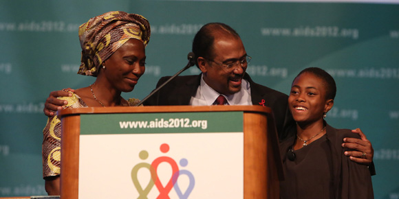 UNAIDS Executive Director Michel Sidibé with Florence Uche Ignatius with her daughter Ebube Sylvia Taylor at the Opening Session of the 19th International AIDS Conference in Washington, DC, 22 July 2012.