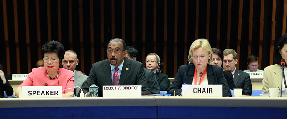 In the opening session, UNAIDS Executive Director Michel Sidibé addressed the Board giving an overview of progress made in the last six months by UNAIDS. In his report, Mr Sidibé also outlined the organizational changes that the Joint Programme undertook in order to increase efficiency in helping countries achieve the goals set for 2015.