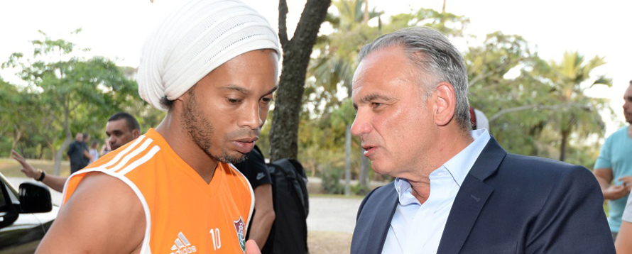 Brazilian football star Ronaldo de Assis Moreira and UNAIDS Deputy Executive Director Luiz Loures.