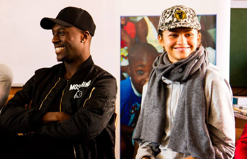 The grandsons of Nelson Mandela, Ndaba and Kweku Mandela, joined the group, which included North American actress and singer Zendaya and Norwegian musical duo Nico & Vinz.