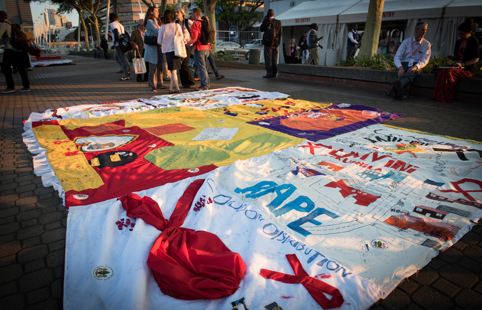 Quilts of various sizes, colours and shapes ripple like waves by the various entrances to the Durban International Conference Centre, hosting the 21st International AIDS Conference. Laid out or hung up, inscriptions vary from “Empower together we shall win” to “Positive link.” The AIDS Quilt Project is back in South Africa telling the story of the journey from Durban 2000—the last time the AIDS conference took place in the city—to Durban 2016.