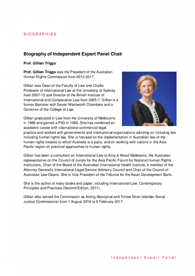 Biographies of the chair and members of the Independent Expert Panel on prevention of and response to harassment, including sexual harassment, bullying and abuse of power at the UNAIDS Secretariat