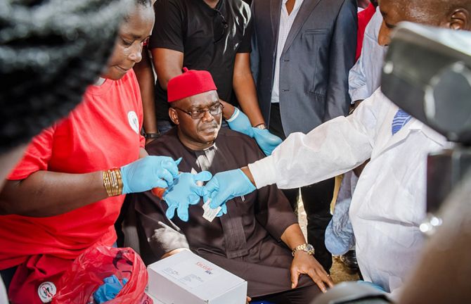 A new national initiative to test 30 million people for HIV in 2014 was launched at an event held in the Bwari state of Nigeria by the Federal Minister of Health Professor Onyebuchi Chukwu. According to Nigerian government more than 80% of men and women in Nigeria report to never have been tested for HIV. The Minister of Health led by example and took an HIV test to kick-start the HIV testing campaign. He was joined by UNAIDS Deputy Executive Director Dr Luiz Loures, and the UNAIDS Country Coordinator for Nigeria Dr Bilali Camara who also took the test to mark UNAIDS support to this landmark campaign.