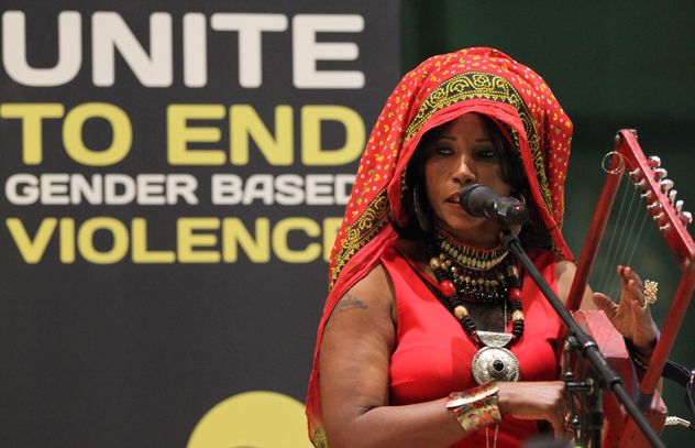 Faytinga, star singer from Eritrea, performing at the opening of the exhibition. Credit: UNAIDS
