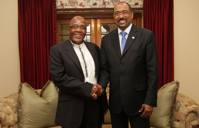 The Minister of Health of South Africa, Dr Aaron Motsoaledi meets with UNAIDS Executive Director, Michel Sidibé on 18 January 2013 in Pretoria