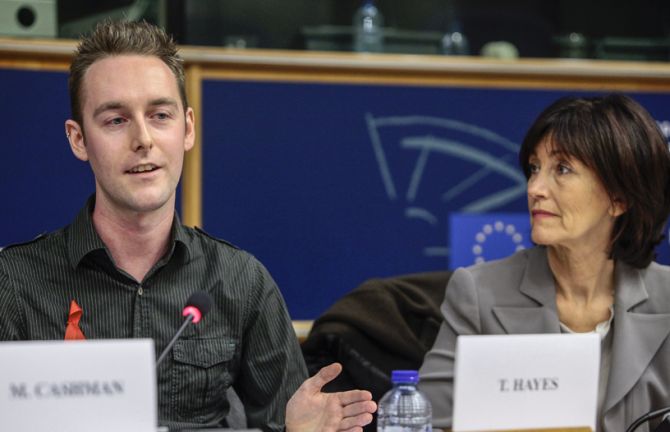 Tom Hayes, ukpositivelad blogger; and Laurette Onckelinx, Minister for Public Health, Belgium.