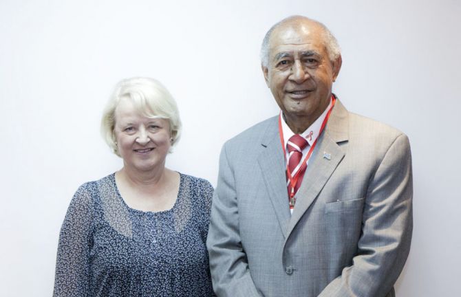 Jan Beagle, UNAIDS Deputy Executive Director, Management and Governance with President Ratu Epeli Nailatikau of Fiji.