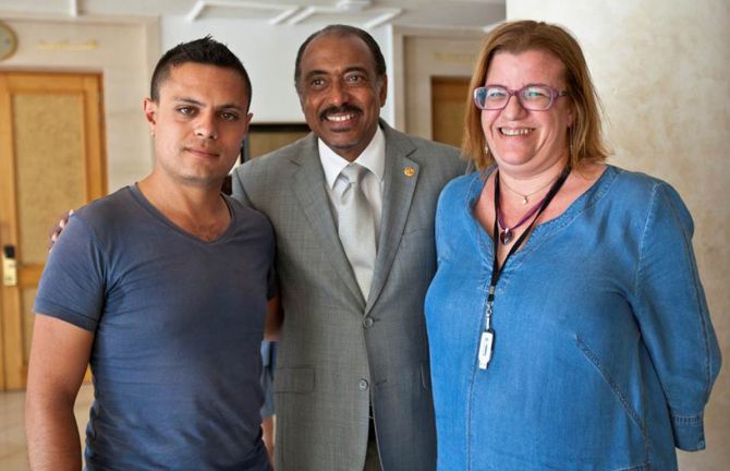UNAIDS Executive Director with MENARosa focal point in Tunisia and the representative of the MSM community. MENA-Rosa is a regional association dedicated to women affected by HIV in the Middle East and North Africa. Photo: O.Abid/UNAIDS