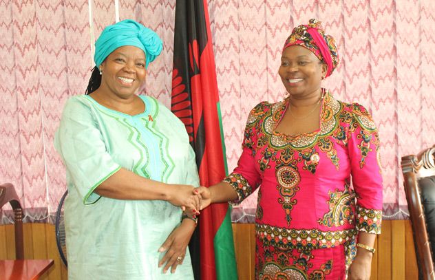 Sheila Tlou, Director, UNAIDS Regional Support Team for Eastern and Southern Africa (left) with Catherine Gotani-Hara, Malawi Minister of Health.