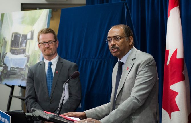 UNAIDS Executive Director addressing the 10-C Ward event in Vancouver, with Terry Lake, Minister of Health, Government of British Columbia.