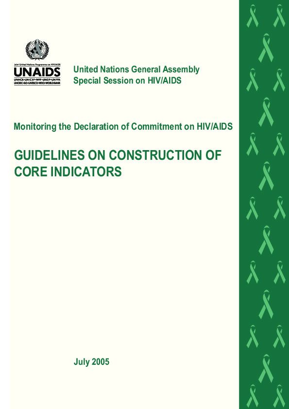 Monitoring the Declaration of Commitment on HIV/AIDS Guidelines on Construction of Core Indicators