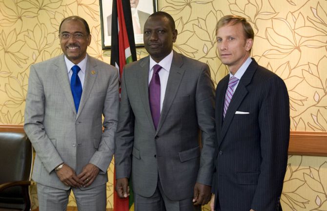 02 Julio 2013 02 Julio 2013El vicepresidente de Kenya, William Ruto, se reunió con el director ejecutivo de ONUSIDA, Michel Sidibé, y el director ejecutivo del Fondo Mundial de Lucha contra el Sida, la Tuberculosis y la Malaria, el Dr. Mark Dybul, como parte de su visita conjunta al país.