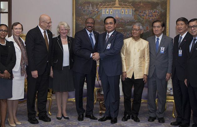 27 Octubre 2014 27 Octubre 2014Tailandia continúa comprometida a colaborar con otros asociados para acabar con la epidemia de sida en la región. En una conversación con Michel Sidibé, Director Ejecutivo de ONUSIDA, el 27 de octubre en Bangkok, Tailandia, el Primer Ministro Prayut Chan-o-cha recalcó que Tailandia mantendrá sus esfuerzos en la respuesta al VIH y compartirá su experiencia con los países vecinos y el resto del mundo. También destacó que el compromiso de Tailandia con los tres ceros (cero nuevas infecciones por el VIH, cero discriminación y cero muertes relacionadas con el sida) es completamente firme.