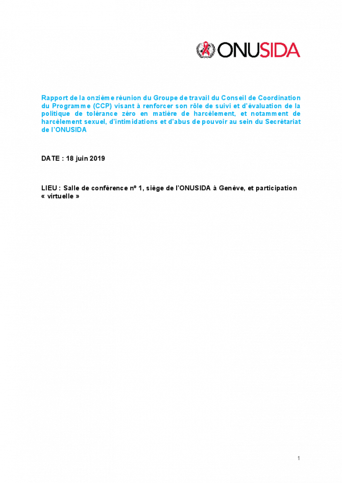 Réunion du Bureau du CCP de l’ONUSIDA 3 octobre 2019