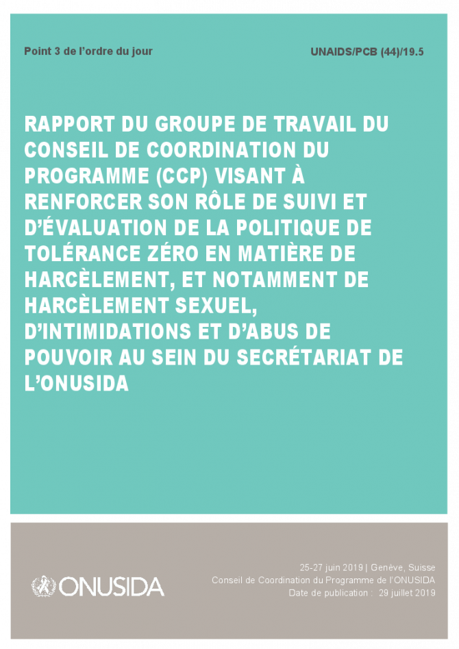 Point 3 de l'ordre du jour Rapport du Groupe de travail du Conseil de coordination du programme (CCP) visant à renforcer son rôle de surveillance et d’évaluation en matière de tolérance zéro du harcèlement, y compris le harcèlement sexuel...