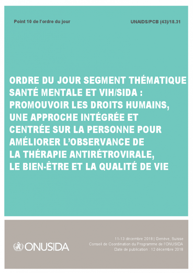 Point 12 de l'ordre du jour SEGMENT THÉMATIQUE: SANTÉ MENTALE ET VIH/SIDA : PROMOUVOIR LES DROITS HUMAINS,UNE APPROCHE INTÉGRÉE ETCENTRÉE SUR LA PERSONNE POURAMÉLIORER L’OBSERVANCE DELA THÉRAPIE ANTIRÉTROVIRALE,LE BIEN-ÊTRE ET LA QUALITÉ DE VIE