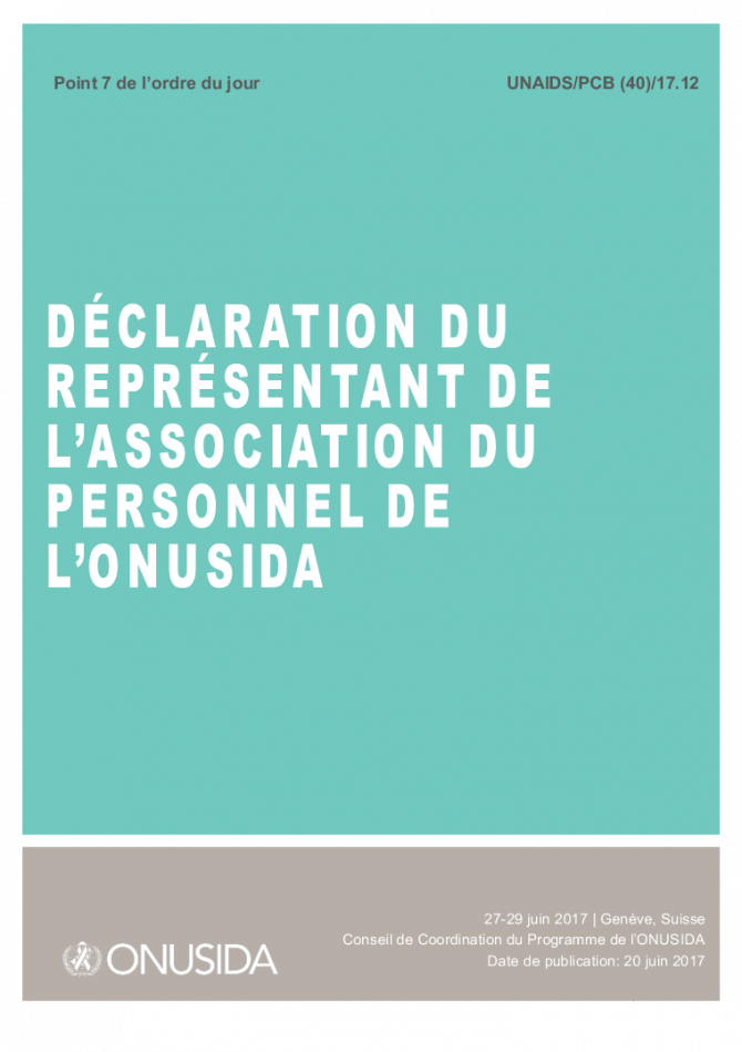 Point 7 de l'ordre du jour Déclaration du représentant de l’Association du personnel de l’ONUSIDA