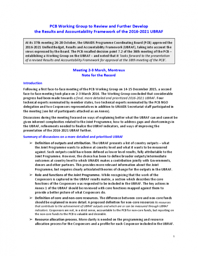 UNAIDS PCB Working Group Second face-to-face