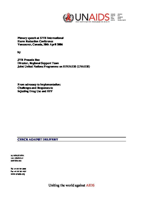 Plenary speech at XVII International Harm Reduction Conference Vancouver, Canada, 30th April 2006