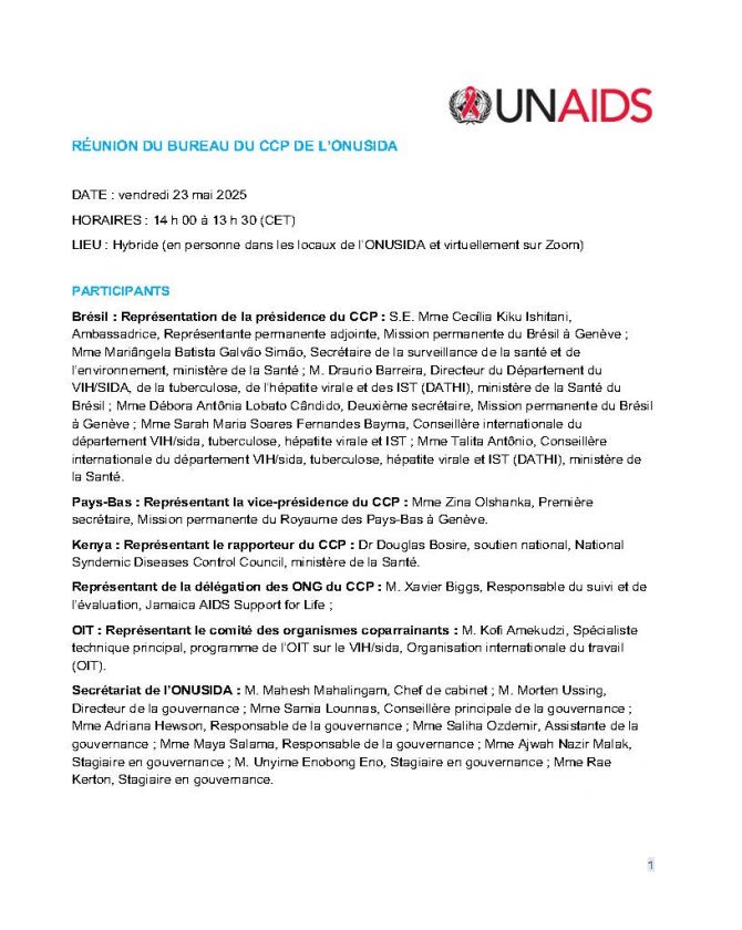 Réunion du Bureau du CCP de l’ONUSIDA 23 mai 2025