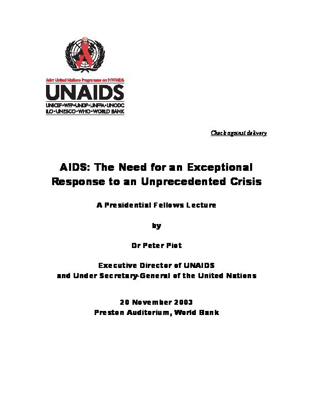 Health Science Centre, Beijing University, 13 June 2005, "AIDS has changed the world", Speech by Peter Piot, UNAIDS Executive Director and Under Secretary General of the United Nations