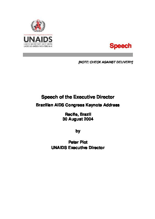 Brazilian AIDS Congress Keynote Address, Recife, Brazil 30 August 2004 by Peter Piot UNAIDS Executive Director