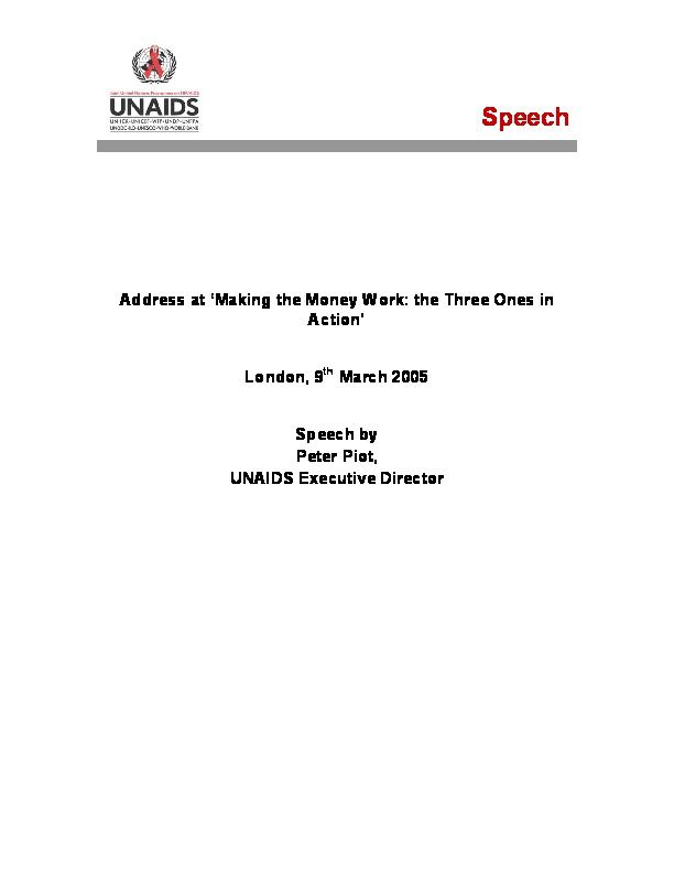 Making the money work for people on the ground, Speech at the Opening Ceremony of ICASA 2005, Dr Peter Piot