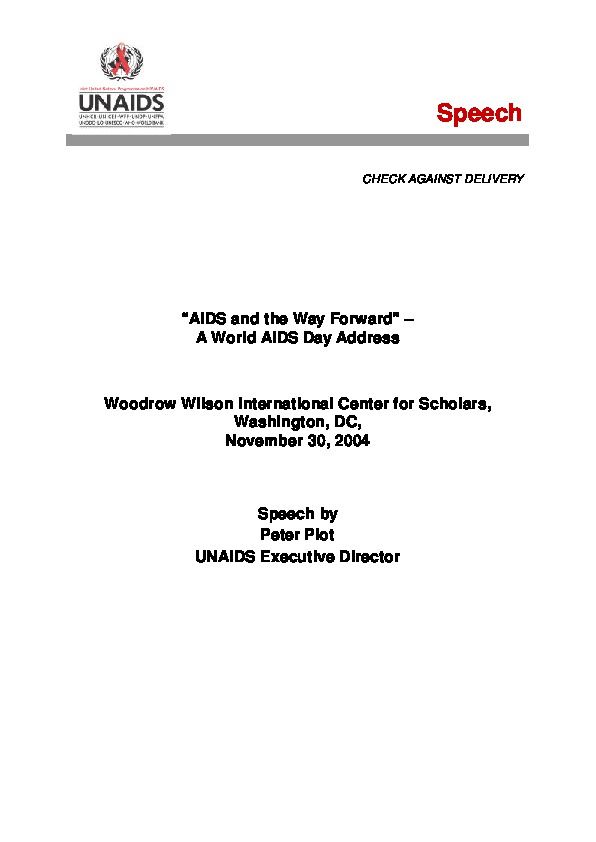 “AIDS and the Way Forward” – A World AIDS Day Address, Woodrow Wilson International Center for Scholars, Washington, DC,