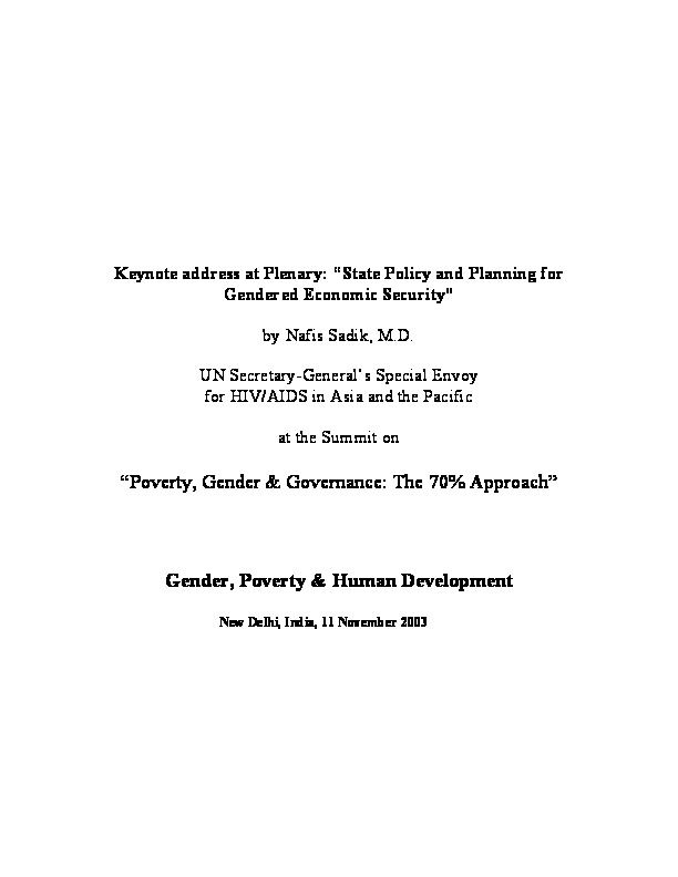 Keynote address at Plenary: “State Policy and Planning for Gendered Economic Security” by Nafis Sadik, M.D.