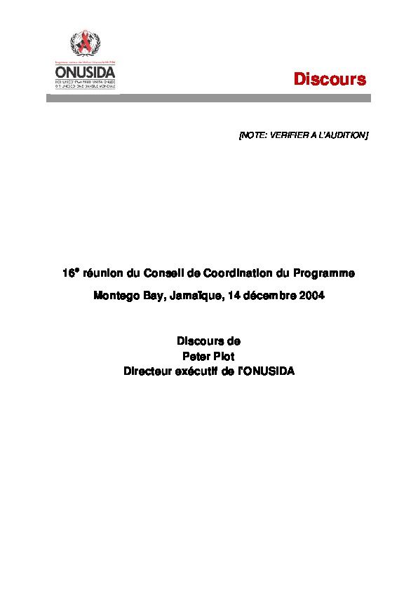 Discours du Directeur exécutif à la 15ème réunion du Conseil de Coordination du Programme, Genève, 23 juin 2004