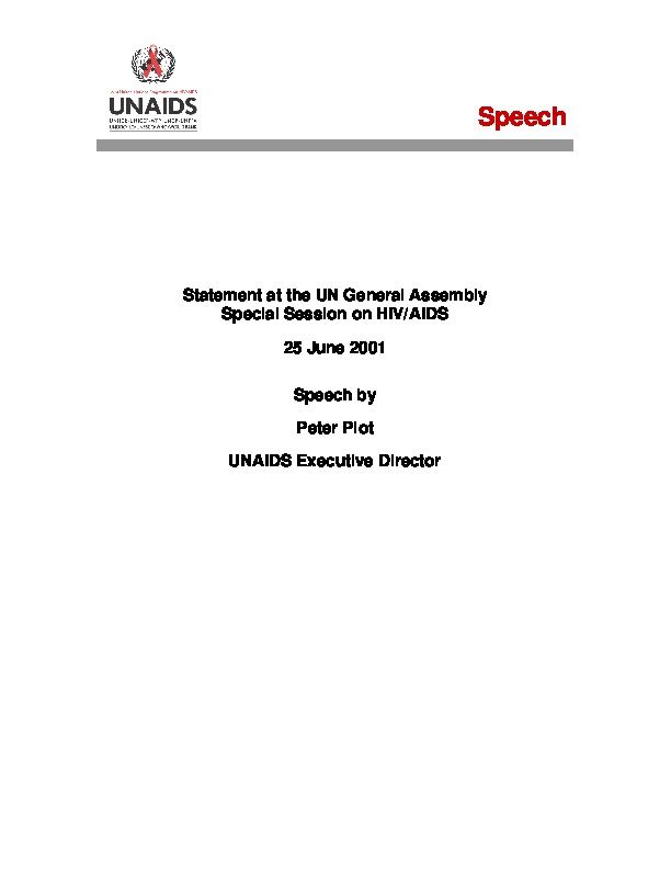 Statement at the UN General Assembly Special Session on HIV/AIDS by the Executive Director of UNAIDS