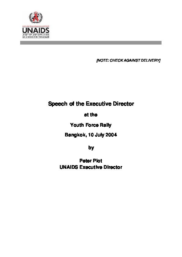 Speech of the Executive Director at the Youth Force Rally, Bangkok, 10 July 2004, by Peter Piot