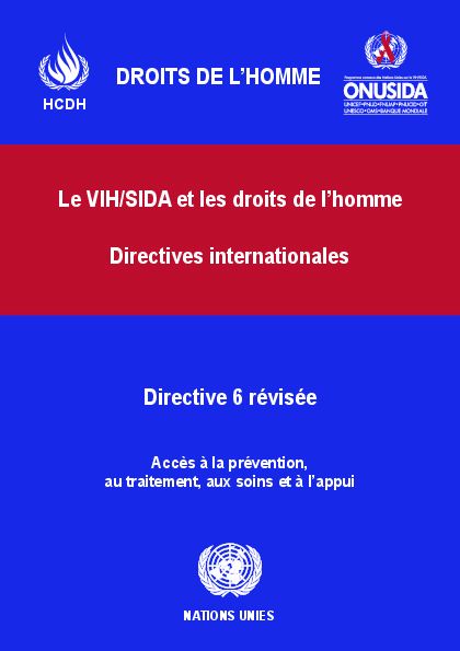 Le VIH/SIDA et les droits de l’homme, directives internationales. Directive 6 révisée : accès à la prévention, au traitement, aux soins et à l'appui