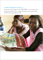 Ce document fournit des indications sur la manière dont le Programme commun des Nations Unies sur le VIH/sida (ONUSIDA), ses organismes coparrainants et son Secrétariat (que ce soit au niveau national, régional ou mondial) doivent renforcer et mettre en oeuvre des partenariats efficaces et respectueux avec la société civile. Il devrait permettre à l’ONU d’atteindre les objectifs et engagements définis dans la Déclaration politique sur le VIH/sida de 2011.