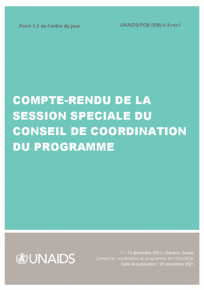 Point 1.2 de l'ordre du jour: Rapport de la Session Spéciale