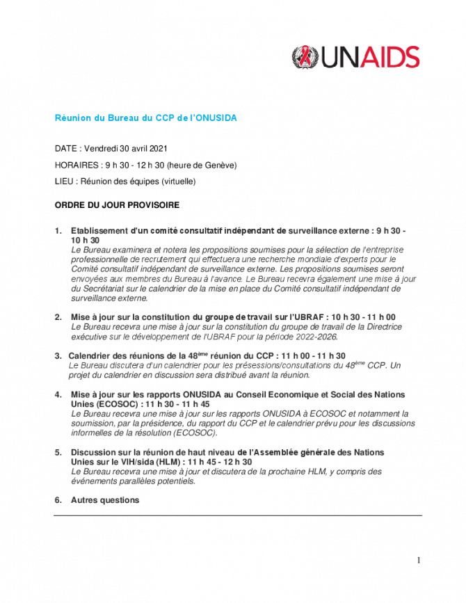 Bureau du CCP de l'ONUSIDA 30 avril 2021
