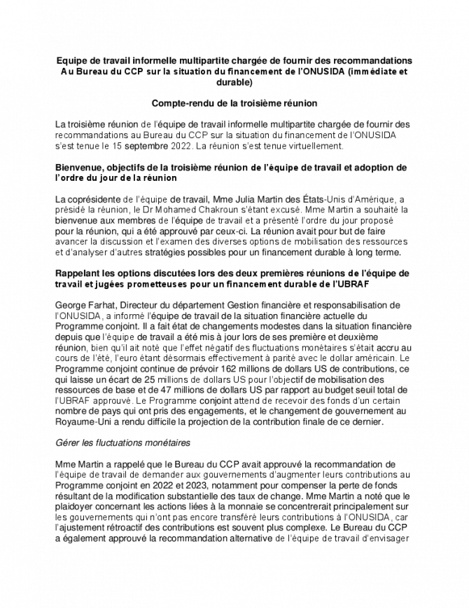 Réunion équipe de travail informelle multipartite: 15 septembre 2022