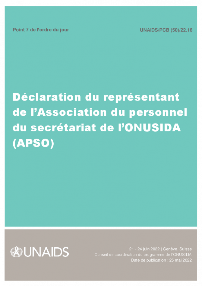 Point 7 de l'ordre du jour: déclaration du representant de l'association du personnel du secretariat de l'ONUSIDA