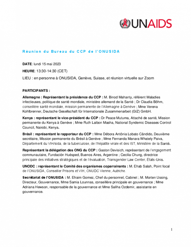 Réunion du Bureau du CCP de l’ONUSIDA 15 mai 2023