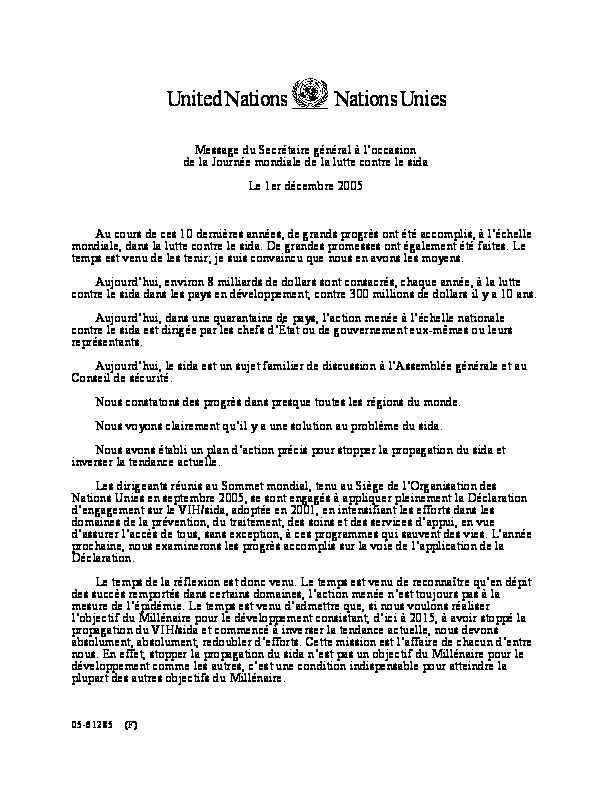 Message du Secrétaire général à l’occasion de la Journée mondiale de la lutte contre le sida