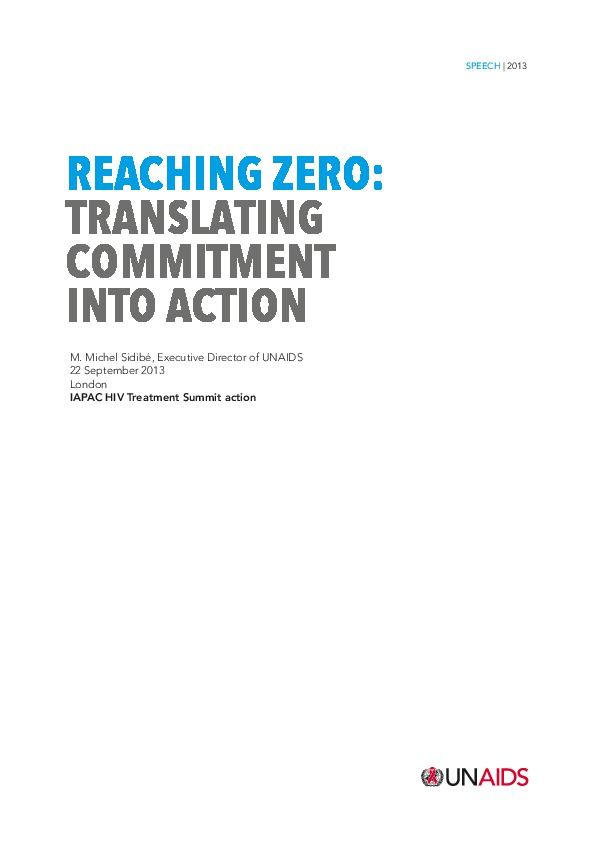 Reaching Zero: Translating commitment into action, speech by UNAIDS Executive Director Michel Sidibé on the occasion of IAPAC HIV Treatment Summit