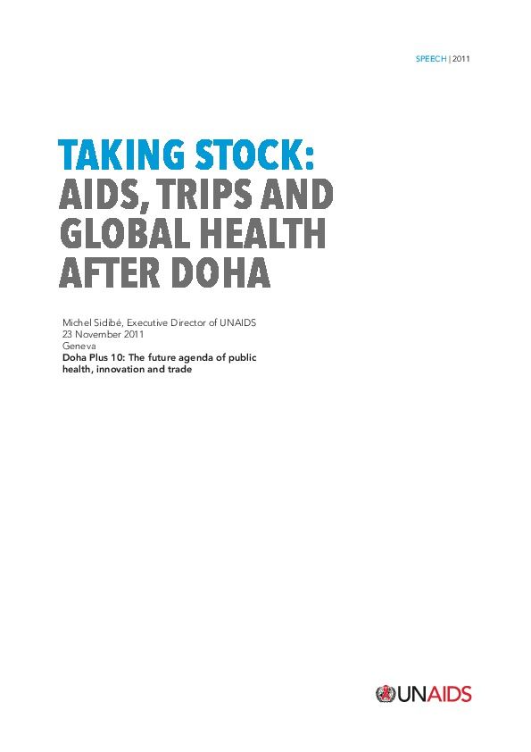 UNAIDS Executive Director’s speech: Taking stock: AIDS, TRIPS and global health after Doha.