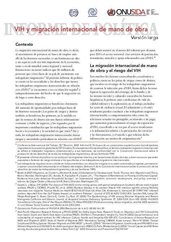 INFORME DE POLÍTICA : Penalización de la Transmisión del VIH