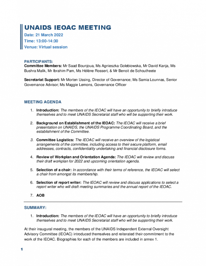 UNAIDS IEOAC: Meeting: 21 March 2022