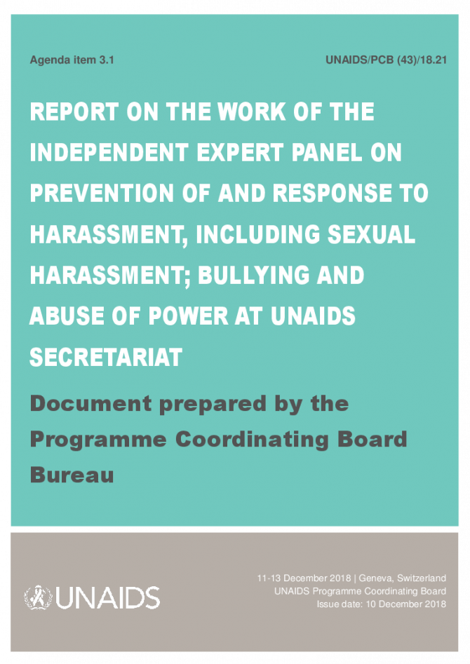 Agenda item 3.1 Report on the work of the Independent Expert Panel on Prevention of and response to harassment, including sexual harassment; bullying and abuse of power at UNAIDS Secretariat