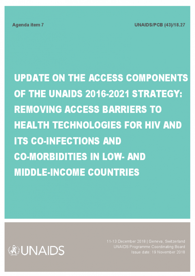 Agenda item 7 Update on the access components of the UNAIDS 2016–2021 Strategy: removing access barriers to health technologies for HIV and its coinfections and comorbidities in low- and middle-income countries