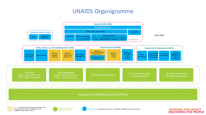 UNAIDS Secretariat Organigramme with Network of UNAIDS Country Office details
